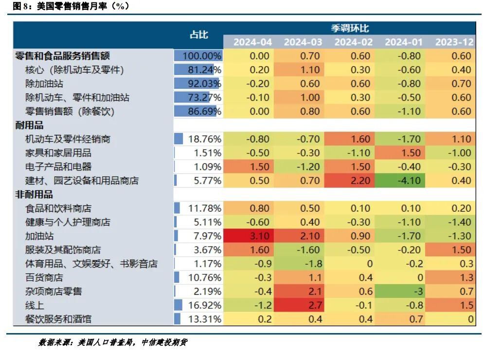 展望后市,关注宏观预期的转变。目前镍价的逻辑仍是有色的贝塔行情,不过交易逻辑已经由再通胀出现转变。2024年4月,美国CPI当月同比3.4%,核心CPI同比3.6%,相较3月份均有所回落,符合市场预期,同时零售月率相较3月也出现回落,不及预期,因而通胀压力减轻以及经济基本面疲态略显的组合,使得美联储降息预期有所走强,镍价因此短期出现反弹。对于后市走势,一方面市场过度计价新喀事件导致供应偏紧的影响,我们预期由此产生的溢价可能出现回吐,另一方面,目前镍价走势的主要逻辑仍在锚定有色板块,关注宏观预期转向产生的扰动,一是美联储政策转向的预期,二是关注市场对于滞涨的确认。