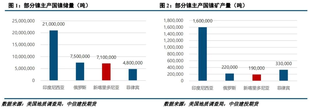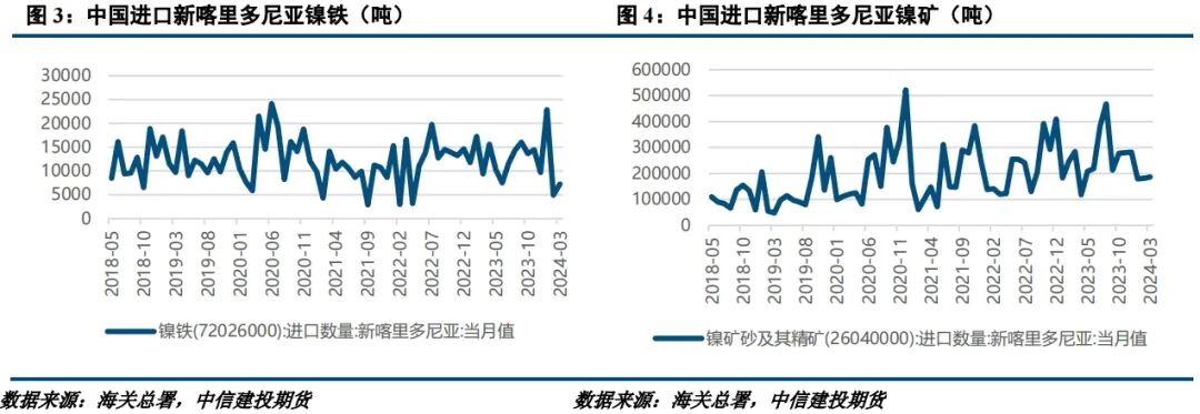 镍产业是新喀的支柱产业,贡献了主要的GDP增长。据USGS数据,2022年新喀里多尼亚镍储量710万吨,占比全球6.96%,镍矿产量19万吨,占比全球5.76%。新喀的镍矿以红土镍矿为主,品位较高,主要出口亚洲国家,出口产品以镍铁和镍矿为主,其中镍铁不同于印尼的 NPI,新喀主产的是Feni。2023年,中国从新喀进口镍铁15.15万吨,占全年进口量的1.79%,从新喀进口镍矿316.24万吨,占比7.07%,总体来看占比并不高。但由于中国镍矿进口较为依赖菲律宾,而菲律宾镍矿发运又存在季节性扰动,每年菲律宾雨季镍矿进口会出现回落,所以在此期间新喀的镍矿供应就成为了重要的补充,海关数据显示每年12月至次年3月,新喀镍矿进口占总进口量的比例将会提升至到15%上下,而其他月份占比则维持在5%左右。