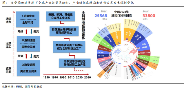 从宏观面来看,农历龙年以来以中东及俄乌为代表的地缘政治乱局持续发酵扩大,导致大国博弈与地缘乱局威胁世界和平发展与安全治理,东西方产业链、价值链和供应链裂痕加深,全球经贸秩序遭遇现实主义威胁和冲击,面对危机、冲突甚至战势升级,全球格局深刻变化引发的连锁反应强化,灰犀牛临近黑天鹅乱舞冲击各国产业链安全,全球新一轮科技创新从合作到竞争到对抗,关键性产业链科技竞争加剧、资源品面临大国之间供应链争夺,有色为代表的战略原材料面临宏观定价变量增多、生产扰动增加、物流效率降低、风险溢价提高等巨变,甚至出现一系列突发地缘政治因素导致大宗原料经贸重塑与供需错配。
