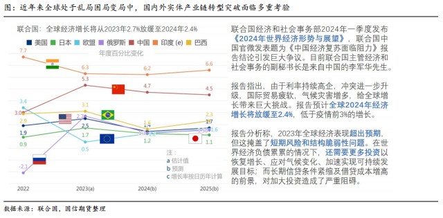 从更广泛的大宗关键原料产业链视野来看,2024年海外正迎来包括欧美俄等多个经济大国和“关键资源国”选举换届。面对百年变局加速演进下,大国博弈及地缘政治等因素复杂影响持续施压,有色为代表的全球实体经济供应链受制于区域经贸割裂与重塑,全球经贸往来的效率损失、成本增加、订单转移、产业冲击等多重压力,目前我国大宗商品产业链贴近下游终端行业的需求仍有待恢复,部分生产企业深陷终端需求不振、产能过剩压力、行业利润萎缩的困局,这不仅导致大宗产业上下游企业经营和价格管理难度加大,还会通过全球产业竞争加大与行业内卷加速企业淘汰重整,产业处于供需重塑的转型阶段,这对于大宗商品阶段性的呈现生产成本提高、供需结构性偏紧,进而导致大宗商品尤其是上游原料价格在多题材推动下呈现“畸形繁荣”境况,需要警惕铜铝等关键原材料异动对我国上下游产业均衡发展构成冲击掣肘。