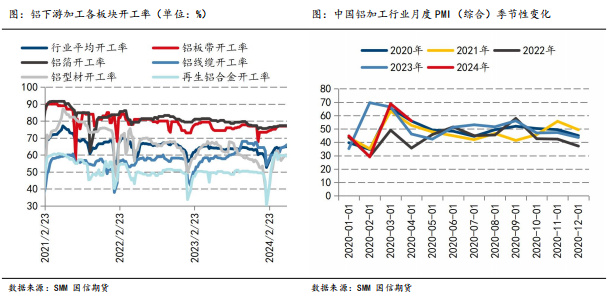 “金3银4”的传统消费旺季,需求端并未展现出明显的亮点,旺季结束后,5月下游铝加工及消费逐渐由旺季向淡季转换,下游开工率回升放缓。据SMM数据,截至5月28日,国内铝下游加工龙头企业开工率为64.6%,近两个月内首次出现下滑。进入6月后,消费端的淡季特征将进一步显露,而政策支持下,家电、新能源汽车及光伏板块将继续支撑用铝需求。