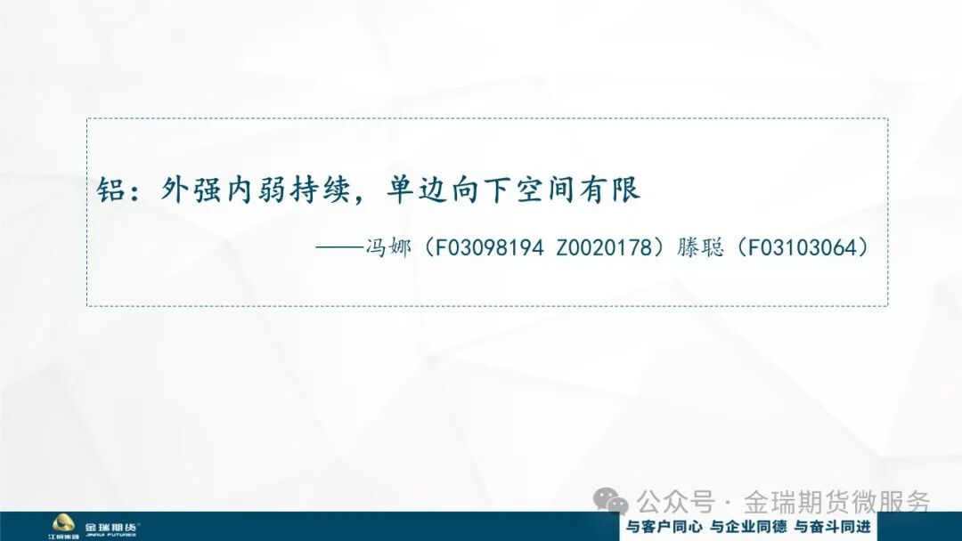 铝:外强内弱持续,单边向下空间有限 & 氧化铝:供需边际改善但紧平衡维持,氧化铝价格难深跌