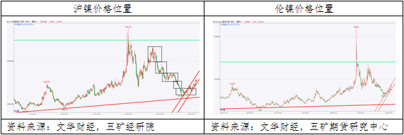 图4:沪镍和伦镍价格处在长期价格区间中部偏低位置