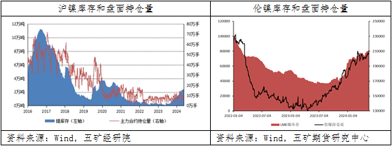 5月,镍空头试盘后撤退,多头谨慎拉涨,持仓量未出现明显增长;国内主力收缩空头敞口至较低规模,国际金融和产业资本多空对增。沪镍和伦镍价格处在长期价格区间中部偏低位置,短期镍价仍处于上涨通道内。