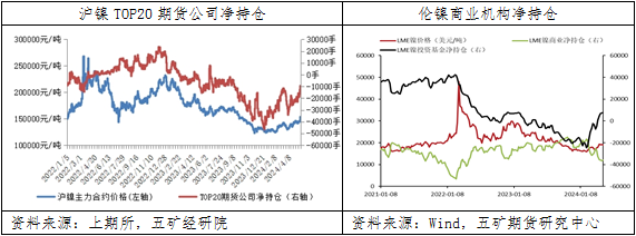 国内主力收缩空头敞口,国际金融和产业资本多空对增。5月17日,沪镍持仓量TOP20期货公司持有净空头9552手,上月同期净空头25512手,收缩空头敞口。5月17日,伦镍商业机构持有净空头39438手,较上月同期空头敞口扩大3843手;投资基金持有净多头10519手,较上月同期多头敞口扩大5835手。
