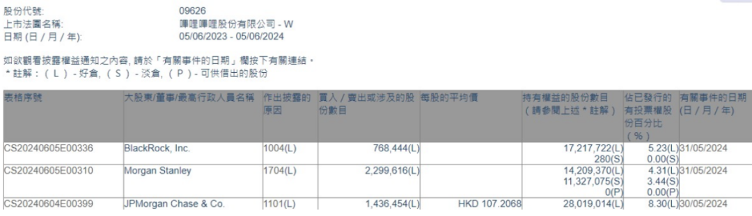 5月30日,摩根大通增持哔哩哔哩H股143.6454万股,平均每股作价107.2068港元,增持总金额约为1.54亿港元。增持后,最新持股数目约为2801.9万股,最新持股比例上升至8.3%。