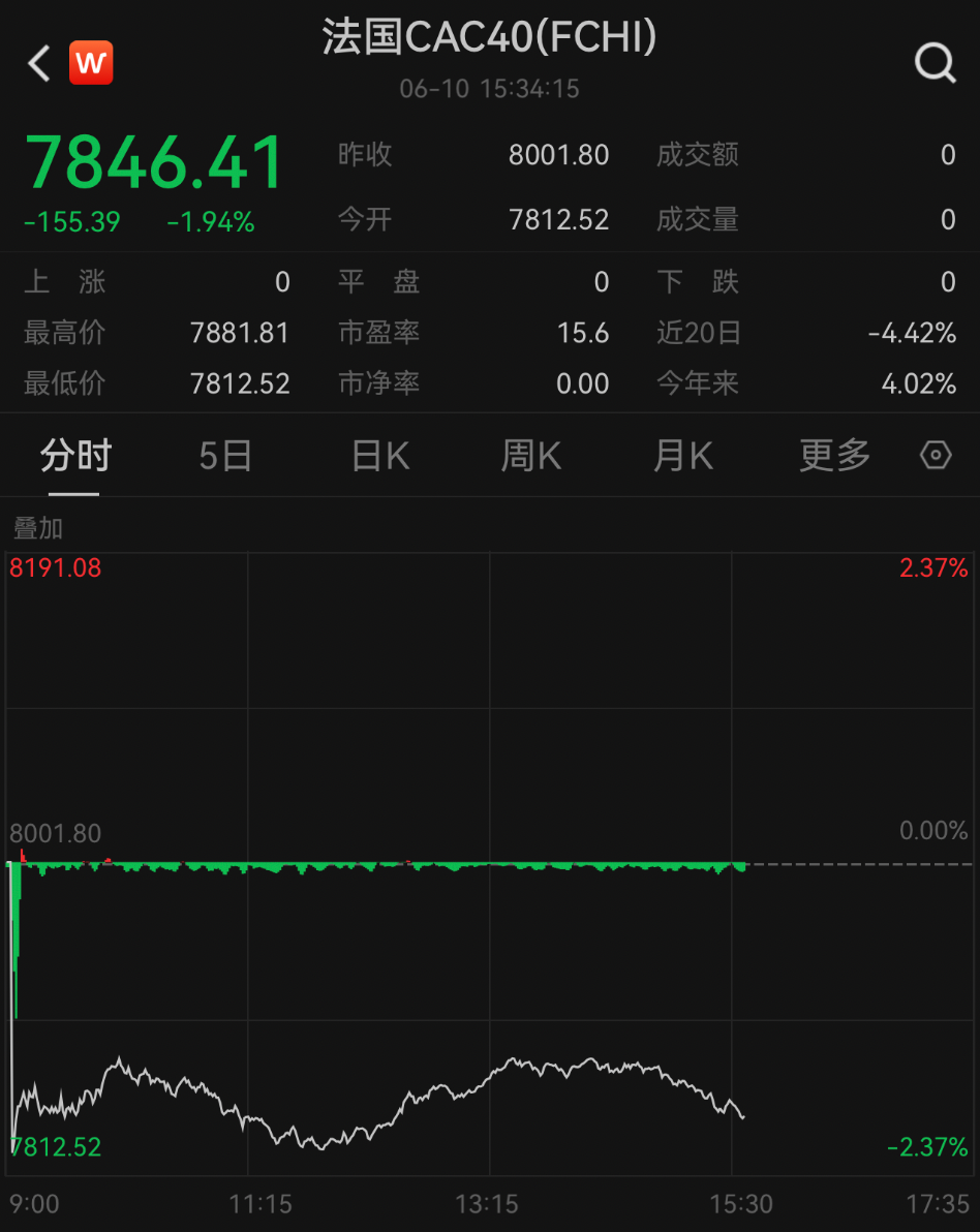 另外,受欧洲议会选举的冲击,欧洲股市全线跳水。其中,欧洲斯托克50指数跌1.1%,法国CAC40指数一度暴跌超2%,德国DAX指数盘中最大跌幅超1%,意大利富时MIB指数盘中最大跌幅超1.2%,英国富时100指数跌0.7%。
