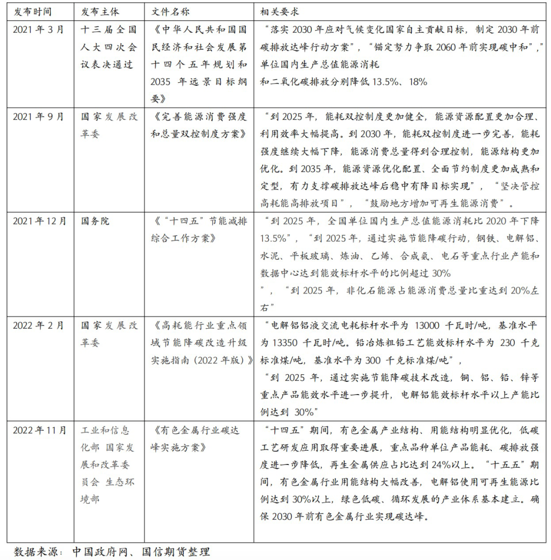在实现“双碳”目标的大背景下,近年来,持续有相关的政策文件出台,以指导和促进铝行业的节能减碳发展。在此,本文对近年来涉及到有色铝行业节能降碳的相关政策文件做出简单梳理: