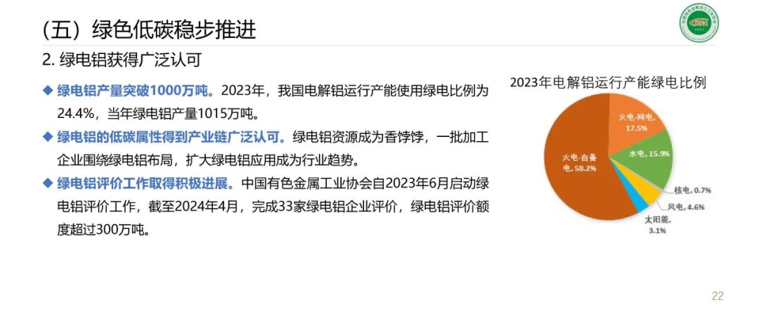 在中国有色金属工业协会党委副书记、中国有色金属加工工业协会理事长范顺科所做的《加快培育新质生产力 推动铝加工行业高质量发展》主旨报告中,给予绿电铝高度评价。