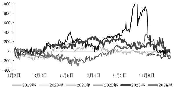 图为沪铜连一减连二(单位:元/吨)