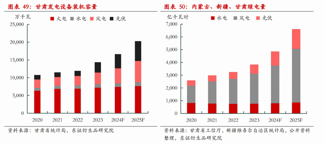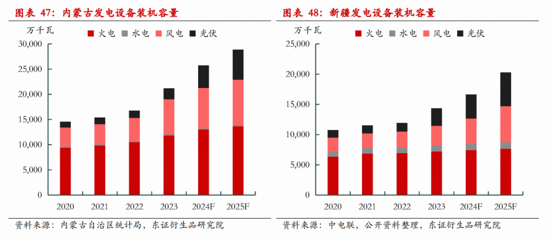 其次,风电和光伏也存在季节性波动的特点,但二者的季节性是互补的,整体的波动较小,此外,内蒙古、新疆和甘肃本身拥有丰富的火电资源,尤其是内蒙古还拥有极为丰富的煤炭资源。在其现有的发电结构中,火电仍然是占比最大的电力来源,可以在风光发电不足时发挥有效的调节作用,因此短期来看内蒙古等地区的电解铝企业几乎不会受到能源方面的限制。