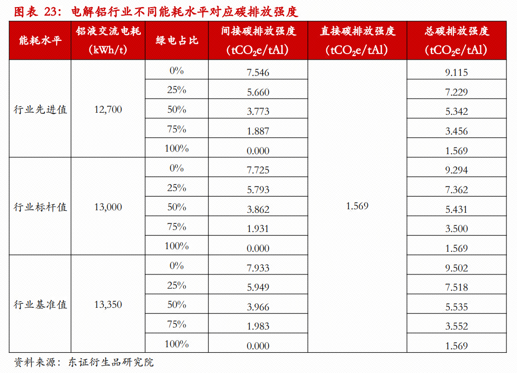 2023年6月,中国有色金属工业协会绿色产品评价中心启动了绿电铝评价工作,建立了目前我国最为规范绿电铝评价体系。但是从评价细则来看,绿色产品评价中心制定的《绿电铝评价及交易实施细则》与生态环境部制定的《企业温室气体排放核算与报告指南 铝冶炼行业》(征求意见稿)中对于“绿电”的界定存在较大的差异,“绿电铝”的界定范围更为宽松,被认定为“绿电铝”的产品并不一定能够得到碳市场的认可。但是“绿电铝”评价可以作为目前电解铝行业绿色发展情况的一个写照。