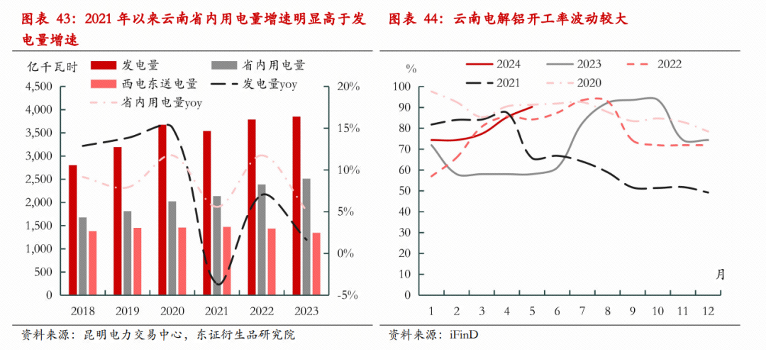 电力结构灵活性方面,云南省火电装机占比仅11%,首批抽水蓄能电站自2024年4月才开工建设,对电力供应的调节能力不足,电力供需形式严峻。综上,未来西南地区可能无法容纳更多的高耗能企业,对电解铝企业来说,电力稳定性会对电解铝的生产产生较大影响,向风光电资源丰富的地区聚集可能是更优的选择。