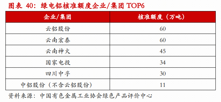 我们从绿色产品评价中心了解到,在已参评的企业中,关于绿电消费证明材料,大部分企业提供了与发电公司或售电公司签订的双边交易购售电合同,少部分通过电力交易系统中的数据或各省/自治区绿电比例来证明绿电消费量。但企业在选择参评周期时有较大的灵活性,因此目前的累计核准额度无法与全年的电解铝产量进行比较。未来,绿电铝的评价标准可能也会随着碳市场的发展而有所调整,尤其是依照各省/自治区绿电比例来计算绿电铝额度的方式大概率会被取消,从而推动企业积极参与绿电交易。