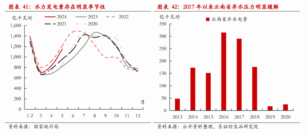 由于水电装机占比大、水电丰多枯少的特性,云南在汛期曾存在较大的弃水压力,“十二五”后期开始,用电量增长大幅低于预期,弃水矛盾日益突出,2016年弃水电量达到历史最高值314亿千瓦时。高耗能企业的聚集带来的电力需求一定程度上缓解了丰水期的弃水压力,但同时也增加了枯水期的用电矛盾。近年来,云南省内用电量增速明显高于发电量增速,且西电东送电量也有所下降,用电结构由总体富余转变为“丰平枯紧”,经常出现枯水期限电限产的情况,工业企业受到明显影响。