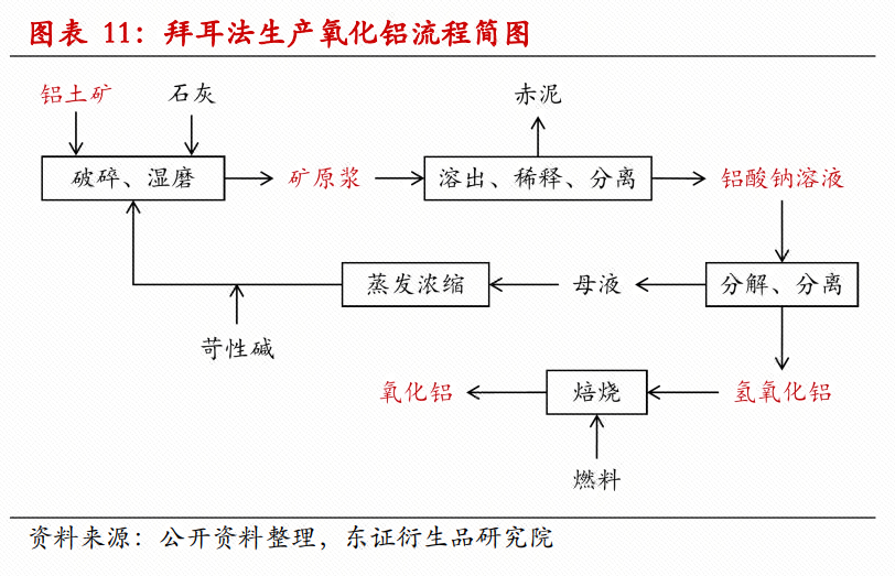 拜耳法是目前世界主流的氧化铝生产工艺,其基本原理是使用氢氧化钠溶出铝土矿中的水合氧化铝得到铝酸钠溶液,添加晶种后搅拌析出氢氧化铝晶体,最后焙烧得到氧化铝产品。我国生产氧化铝的原料消耗大约为,每生产1吨氧化铝,约消耗铝土矿2.4-2.7吨,烧碱0.11-0.13吨,石灰0.2-0.25吨,使用不同品位的铝土矿会影响实际的原料用量。