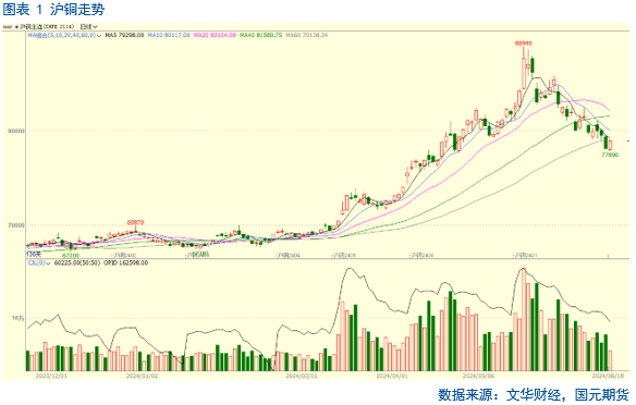上半年铜价再现王者之风,走出了一轮波澜壮阔的行情。从具体走势节奏来看,主要分为两个阶段:年初至5月中下旬,铜价自3月中旬开始启动上涨行情, 5月下旬铜价最高触及88940元,刷新历史高位;而后,自5月末开始,铜价持续回吐跌幅,截至6月下旬,跌幅已达到11.5%。