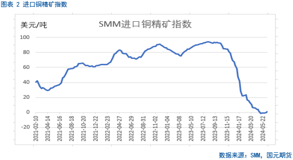 矿石供应紧张问题自3月起明显传导至国内冶炼厂,多家国内冶炼厂在二季度安排检修,也未能遏制加工费的跌势。