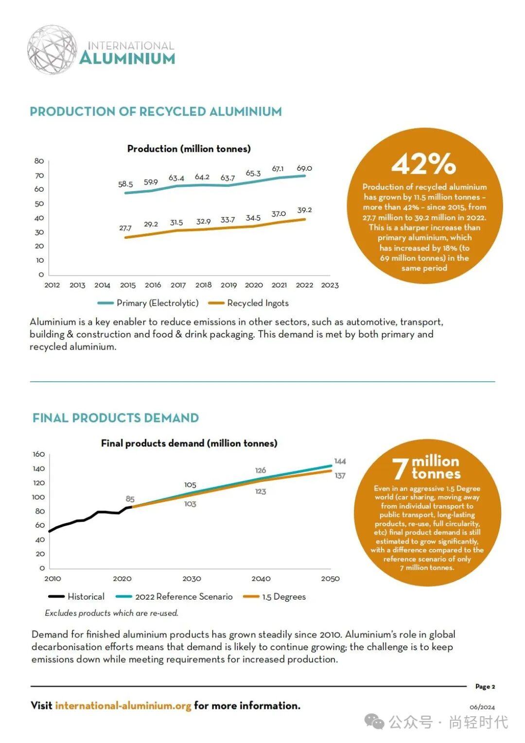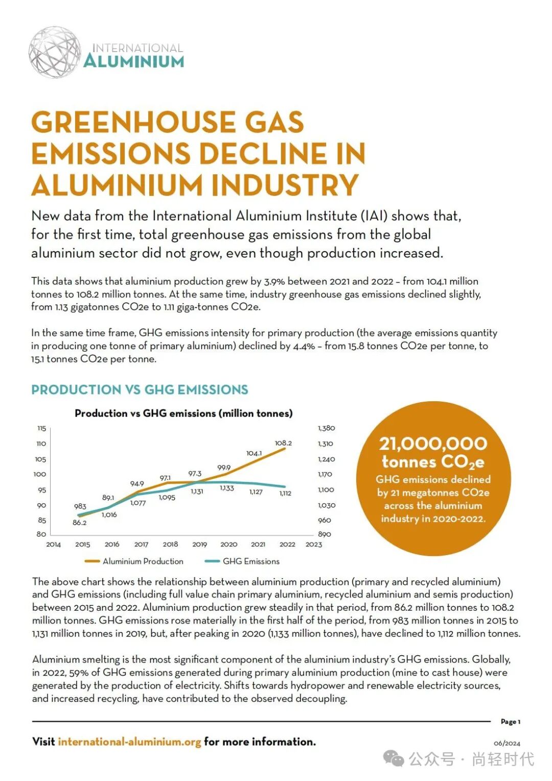 Miles Prosser 表示:“2022年的数据,显示了铝行业在降低生产排放强度方面的工作有所成率。虽然还有很多工作要做,但2022年是依靠生产排放强度降低而减少排放总量并抵消产量增长影响的第一年。