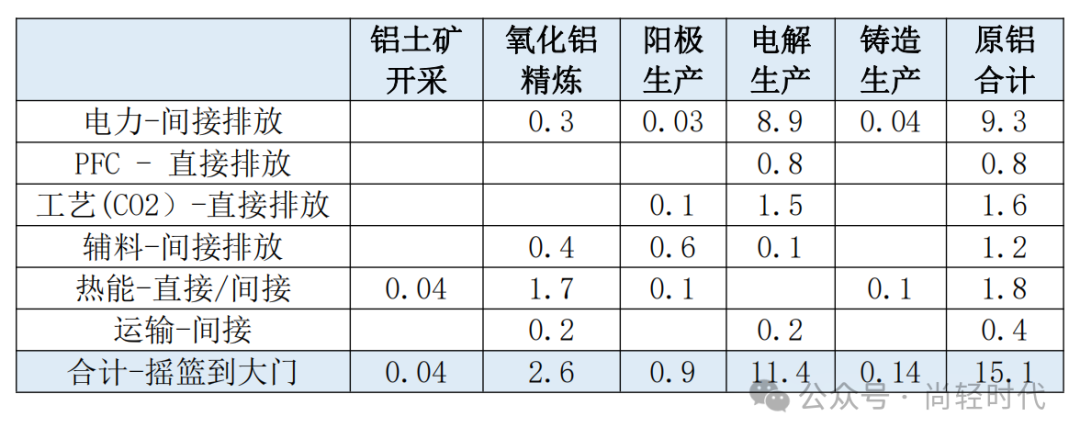 (吨CO2/吨铝)