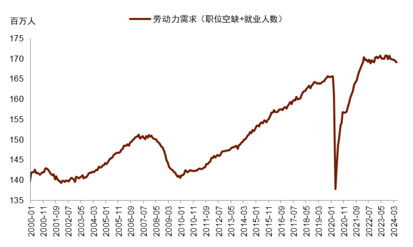 图表2:劳动力需求疫情后迅速回升,近期开始下行