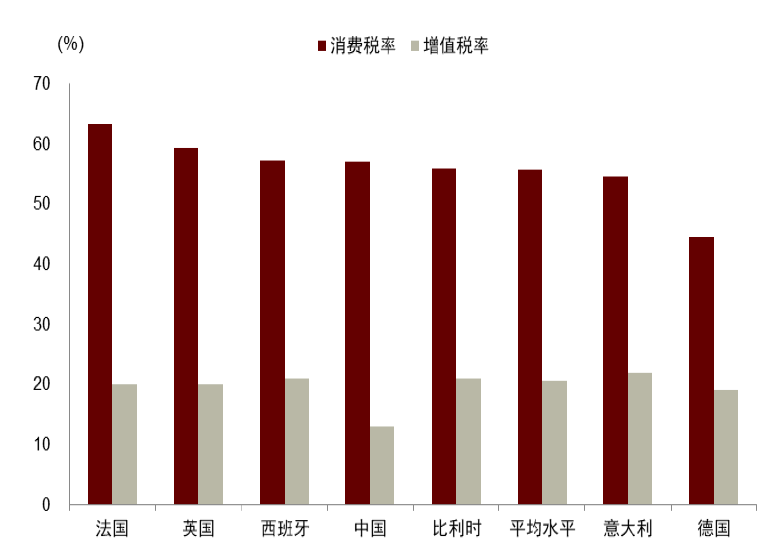 结合政府工作报告辅导读本和国际经验,我们认为中国未来狭义消费税或在高污染类、高端商品/服务方面扩基,同时部分税收或后移至消费环节以培育地方税源。从国际比较来看,中国针对烟草和白酒类商品征收的消费税率处于国际平均水平,但针对燃油开征的消费税相对较低。事实上,成品油因其经济地位重要、市场规模庞大、涉及产品种类繁多复杂、污染属性较强等特点,历史上对其消费税政策不断地调整[12]。与发达国家相比,国内成品油的征收范围较狭窄,产品细分较粗糙,尚未形成完整规范的界定,一方面造成税基流失,弱化了对高污染消费的调控能力;另一方面也容易导致税企纠纷,影响企业的生产运营。因此对成品油消费税征收的品类或税率或有完善空间。另外,国际上普遍对石油、煤炭、天然气等化石燃料征收消费税,部分高端商品和服务消费也被纳入消费税征税范围(如奢侈品包、高档家具、高档会所、高档酒店、马术、豪华游轮旅游等)。