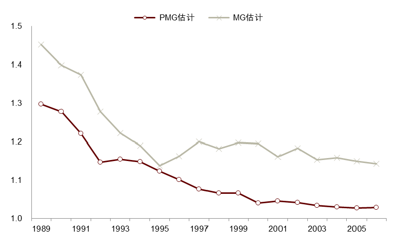 注:PMG和MG分别为面板分析的混合平均组(PMG)估计和平均组(MG)方法。