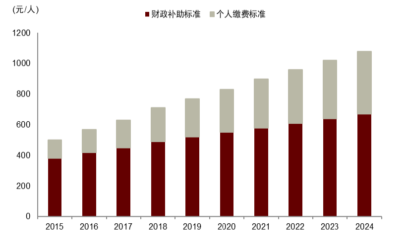 注:2024年居民医保的个人缴费标准尚未发布,我们暂以往年涨幅做外推估算