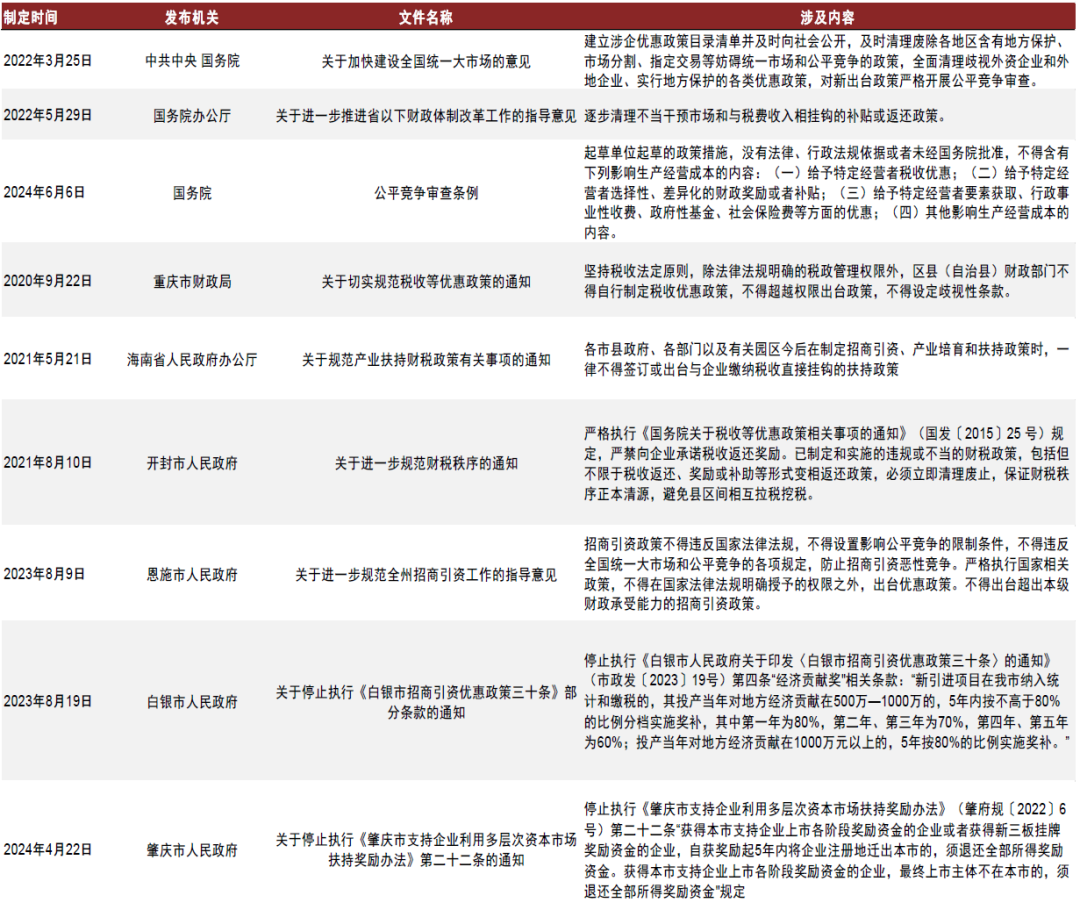 图表31:近几年中央和地方清理规范税收优惠政策一览