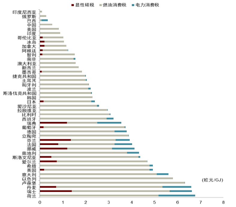 资料来源:OECD. (2019). Taxing Energy Use. [Report]. Paris: OECD Publishing.,中金公司研究部