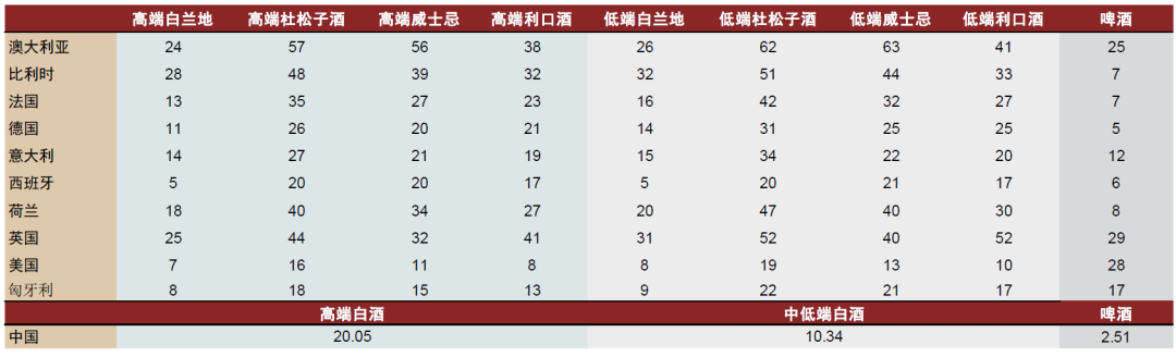 资料来源:Alcohol excise taxes as a percentage of retail alcohol prices in 26 OECD countries,财政部,Wind,中金公司研究部