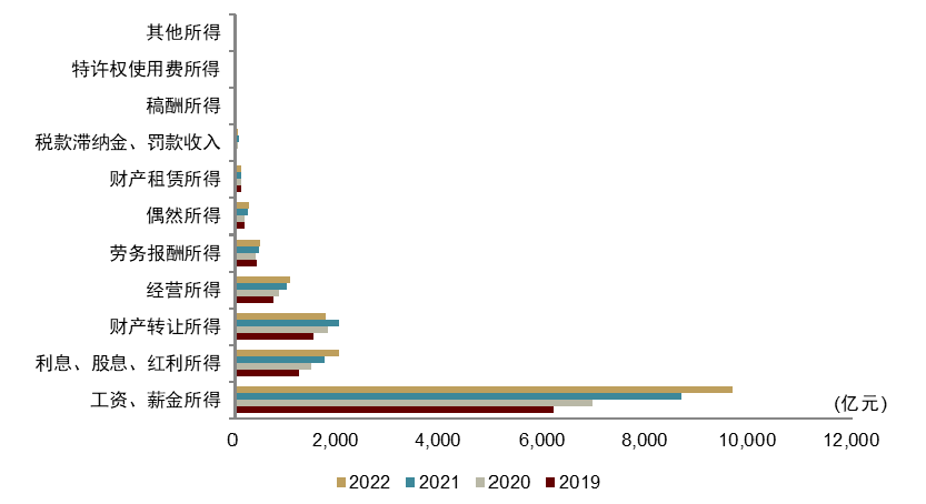 国内个人所得税的增长来源中,工资薪金保持较快增速,并对总体个税贡献超过60%,而资本利得和财产处置收益等占比偏低。从国际经验来看,美国将资本利得纳入个人所得税的综合征收范围,但会将资本利得分为长期收益(持有一年以上的投资利润)和短期收益,为了激励长期投资,前者税率往往低于后者;此外利息收入和普通股息的税率通常与普通所得税相同,但如果利息收入较高,还需要缴纳额外的税款,即净投资所得税(NII Tax),对利息、股息等征收3.8%的税。
