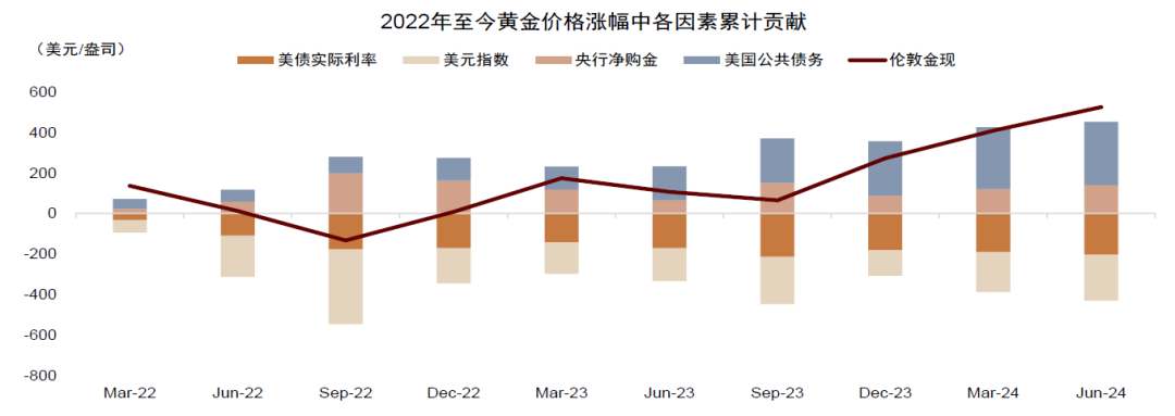 图表29:中金大类资产四因子模型对黄金价格涨幅贡献的拆分