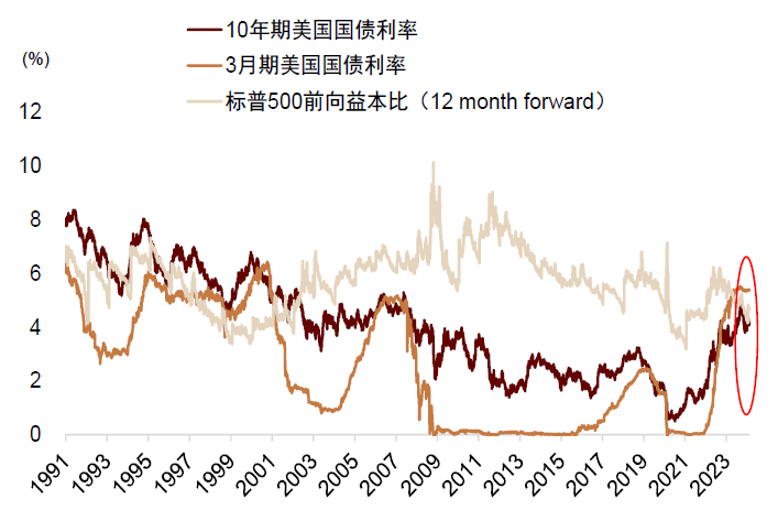 美联储降息减轻我国货币宽松的外部掣肘,有利于我国债市与汇率表现。降息交易同样利好股票、商品等风险资产,但从估值角度,美国3个月短债收益率高于标普500前向益本比,反映股票相对债券估值偏高,可能对AI革命前景过度乐观。