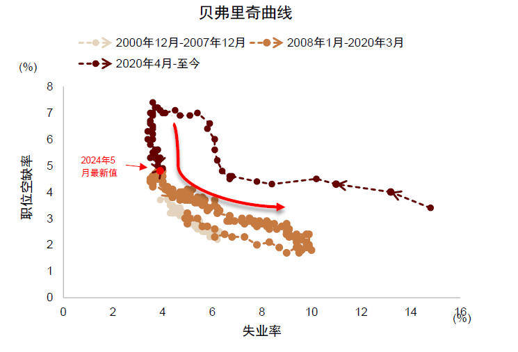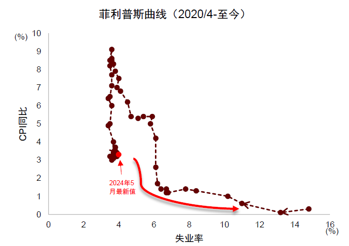 与此同时,衡量通胀与就业关系的菲利普斯曲线也可能接近斜率改变的拐点,提示美国失业率上升速度可能加快。