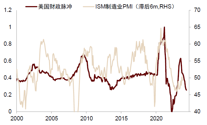 图表20:美国财政脉冲在2023年上行,2024年回落,对经济的支持明显减弱