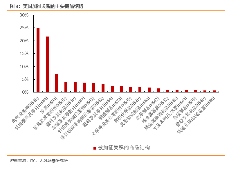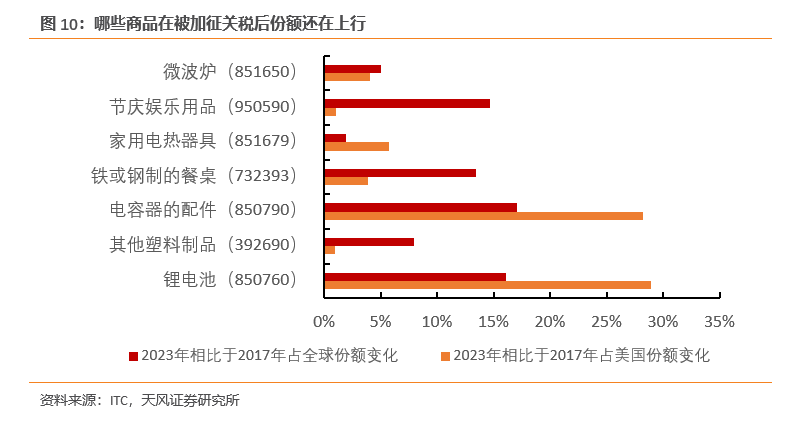 (1)占比17%的被加征关税商品:对美和对全球份额均在提高。