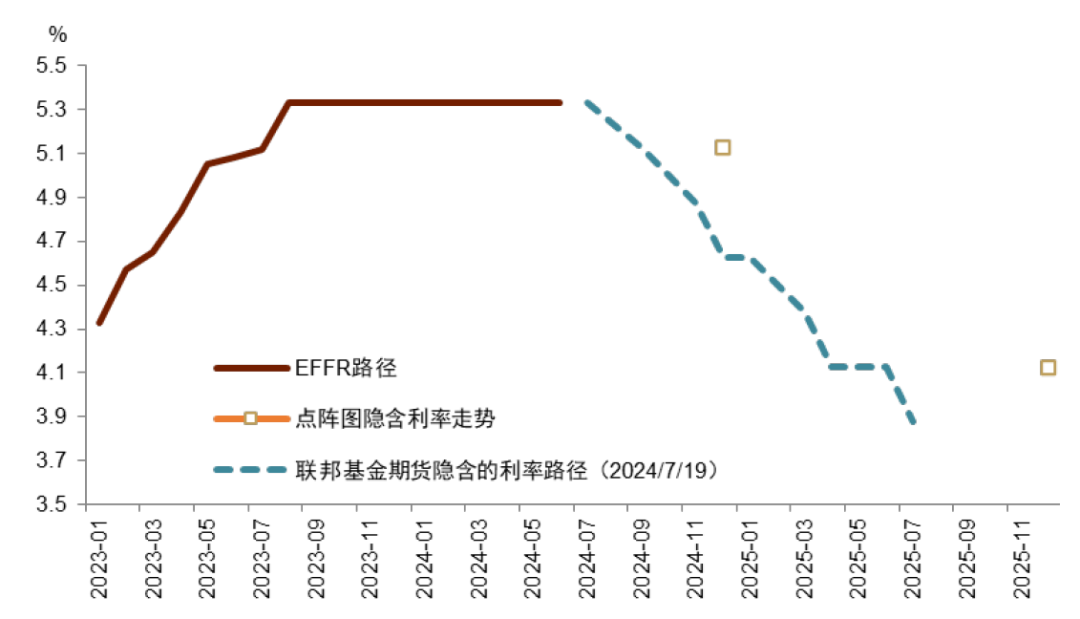 图表1:市场预计降息节奏快于点阵图指引