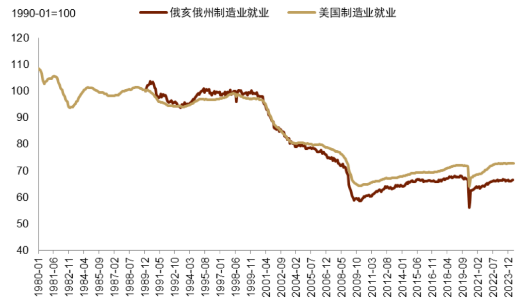 图表7:J.D. Vance所在的俄亥俄州制造业就业自1990年代以来减少近40%