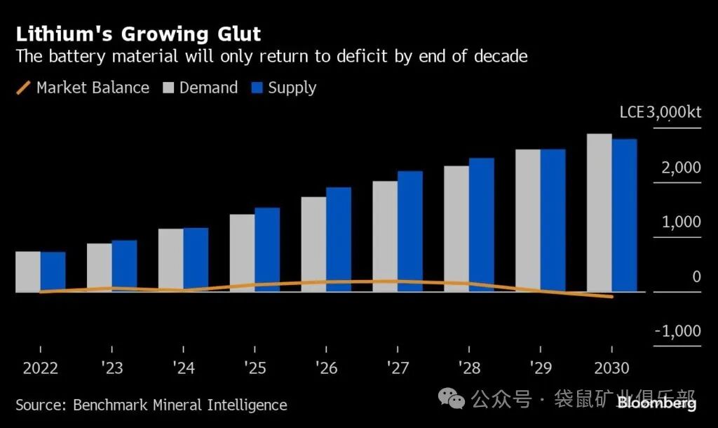根据基准矿产情报机构的预测,2025 年市场供应将增长 32%,超过 23% 的需求增长。该咨询公司称,过剩将在 2027 年达到顶峰,然后在本十年末恢复赤字。