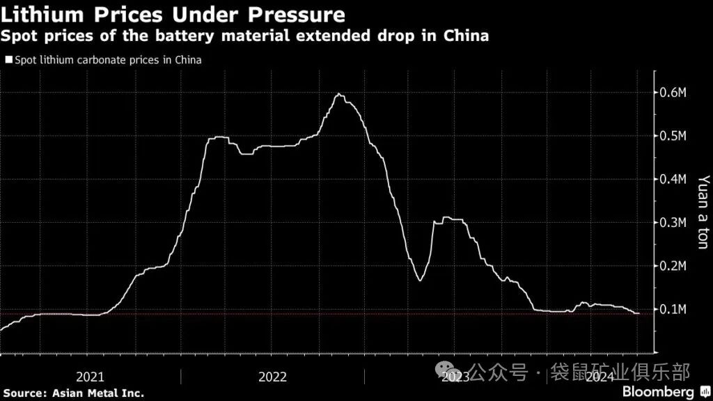 由于电动汽车应用增长放缓和供应增加,锂仍处于低迷状态。中国碳酸锂现货价格一直徘徊在2021年3月以来的最低点附近。