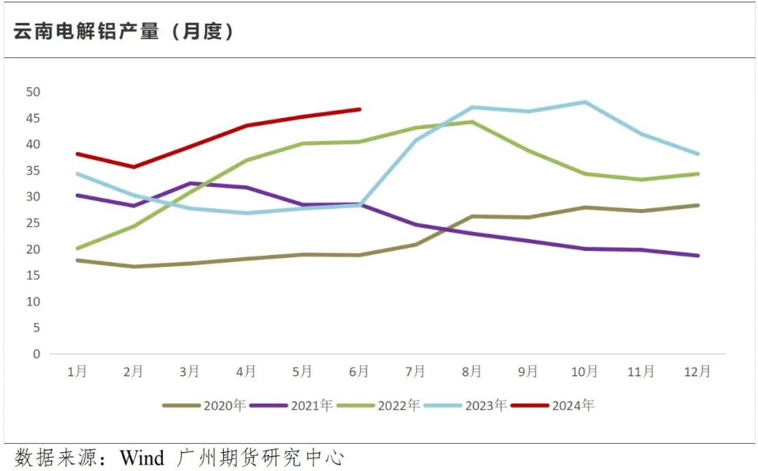 据SMM调研获悉,截止目前,云南地区电解铝前期停产产能全面完成复产,省内电解铝总运行产能达578万吨左右,同比增长90万吨左右。初步测算国内电解铝运行产能在4,334万吨附近,开工率近96.5%,电解铝供应良好。但云南省历年水电发电量占比均在80%以上。每年7-10月的丰水期发电量水电占比超过90%,枯水期水电贡献则下滑至60-70%。后期水电的季节性和“来水”的大小年仍有可能对电解铝产能释放造成较大扰动。