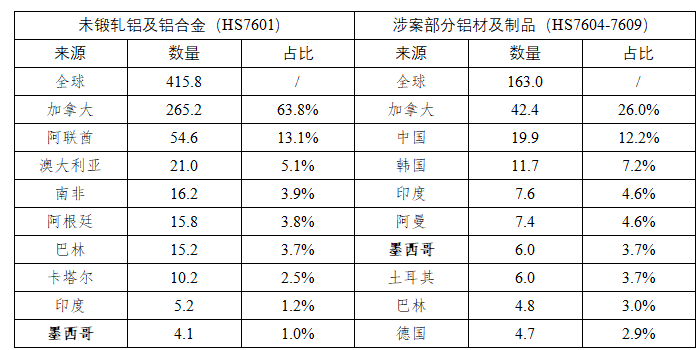 需要说明的是,以上分析是基于墨西哥直接自中俄四国进口,若墨西哥自其他国家或地区进口铝产品的原铝来源或熔铸环节涉及中俄四国,也将以同样规则对待。