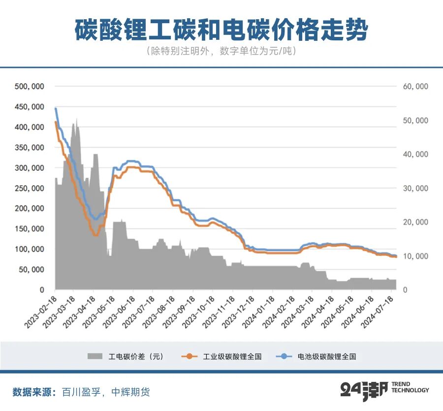 8月2日,LC(碳酸锂)2408报收7.99万元/吨,今年以来跌幅为26.97%,持续刷新上市以来新低;同一日,上海钢联发布数据显示,今日电池级碳酸锂价格较上次下跌1000元,均价报7.95万元/吨,这近乎刷新了三年多(2021年2月24日)以来的最低价。