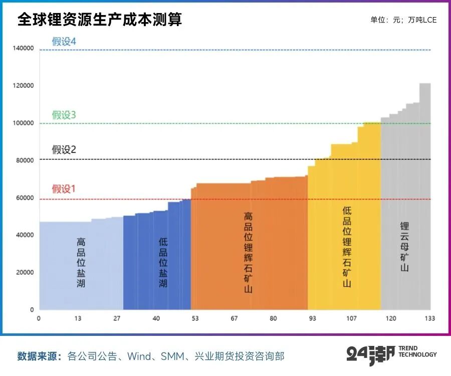 2)24年价格处于8万元/吨,有效供应量约为98万吨LCE,仅有可能在产能出清阶段触达此位置;