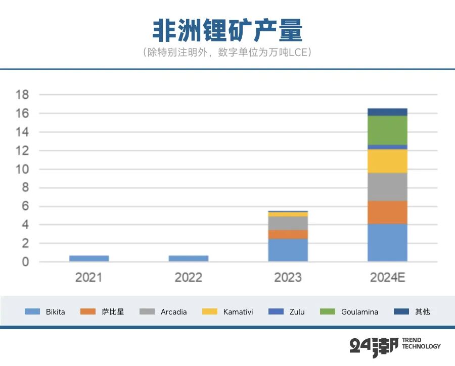 根据安泰科的数据,2024年非洲锂精矿产量将突破100万吨,折合碳酸锂当量16万吨左右,2025年锂精矿产量或将达到200万吨以上,折合碳酸锂当量近30万吨。非洲已经超越尼日利亚和巴西,成为继澳大利亚以后我国第二大锂辉石进口来源。