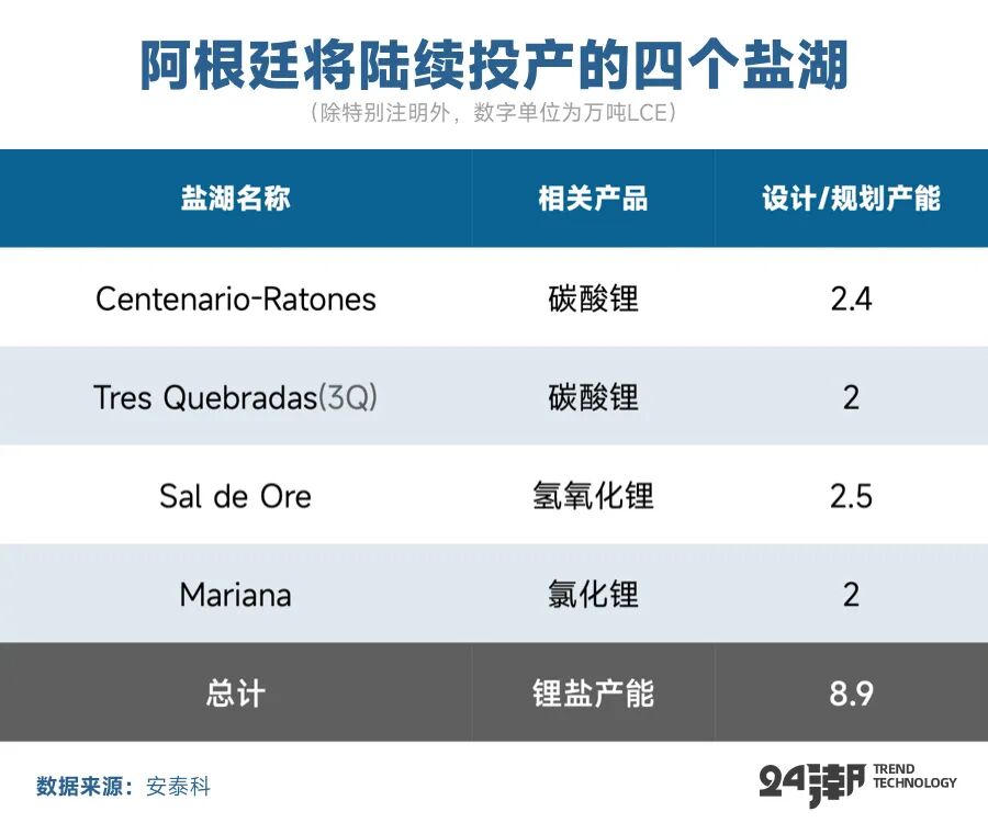 此外,根据五矿证券研究所的统计,2024-2026年预计全球新增锂资源产能104.19万吨LCE,主要以中国、阿根廷盐湖为主:24-26年阿根廷及中国等低成本的盐湖资源逐渐投产。
