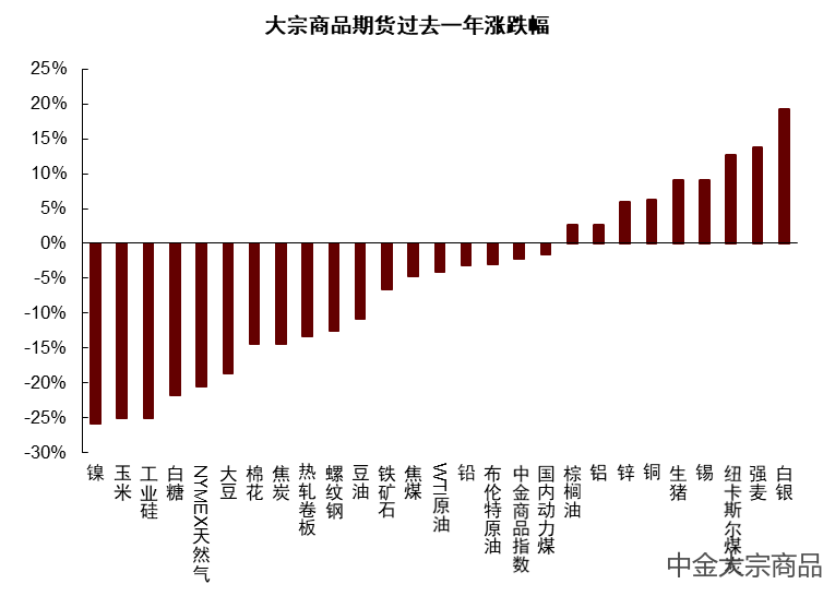 图表:大宗商品期货过去一年涨跌幅