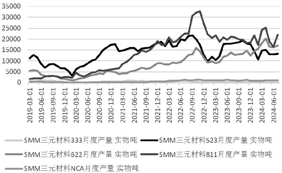 相比之下,二季度以来,需求端短期偏弱。7月以后,部分头部三yuan的排产或有改善,但目前材料端订单仍不是很乐观,大厂以长协客供为主刚性采买,主流电芯厂仍对价格下行区间的原料持观望态度,在去库压力和下游订单一般的情况下需求难有明显起色。数据显示,7月碳酸锂月度需求量64925吨,较上月减少2334吨,环比减少3.48%。7月预期三yuan排产环比有所改善,中高镍预计增量更大。三yuan改善主要受挂钩销售订单和库存建立影响,但考虑终端淡季,电池和材料端改善不宜过于乐观。磷酸铁锂企业目前仍以按需生产为主,部分企业备库量已有所增加,7月产量或小幅减少。储能和动力市场预期改善,需求整体稳中有升。