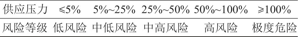 评估风电机组、光伏组件中关键金属的供应压力,有助于把握我国风电、光伏发电等细分行业面临的金属供应态势。供应压力可基于储量或产量,本研究采用国内产量,相关公式引自文献,相应等级划分如表1所示。
